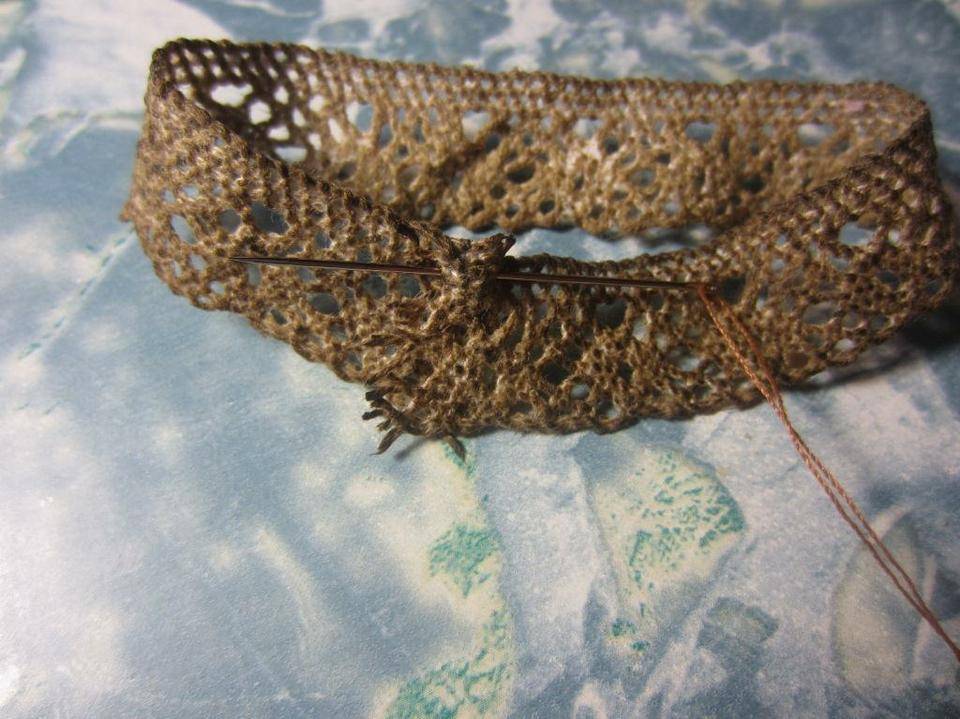 Соедините концы, чтобы получилось кольцо, и прошейте иголкой.