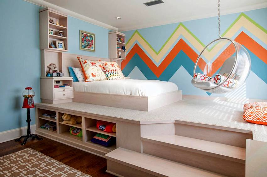 Более функциональной считается кровать-чердак. Спальное место располагается наверху. Под ним можно организовать полноценную систему хранения, расположив комод, шкаф или стеллаж. Создание такой конструкции требует навыков и умений в мебельном производстве. Для двоих деток можно изготовить двухъярусную конструкцию, создание которой также требует от мастера определенного опыта.
