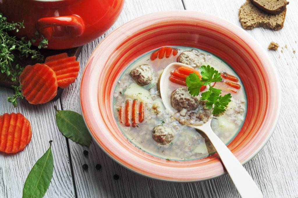 Для приготовления супов нужно использовать нежирный куриный, мясной или овощной прозрачный бульон.