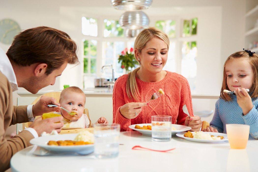 Маме не нужно готовить для ребенка или уговаривать его съесть пюре из баночки. Малыш получает ту же пищу, что и вся семья. Еду слегка разминают или дают небольшими кусочками, формируя навык жевания и постепенно знакомя младенца с рационом близких.