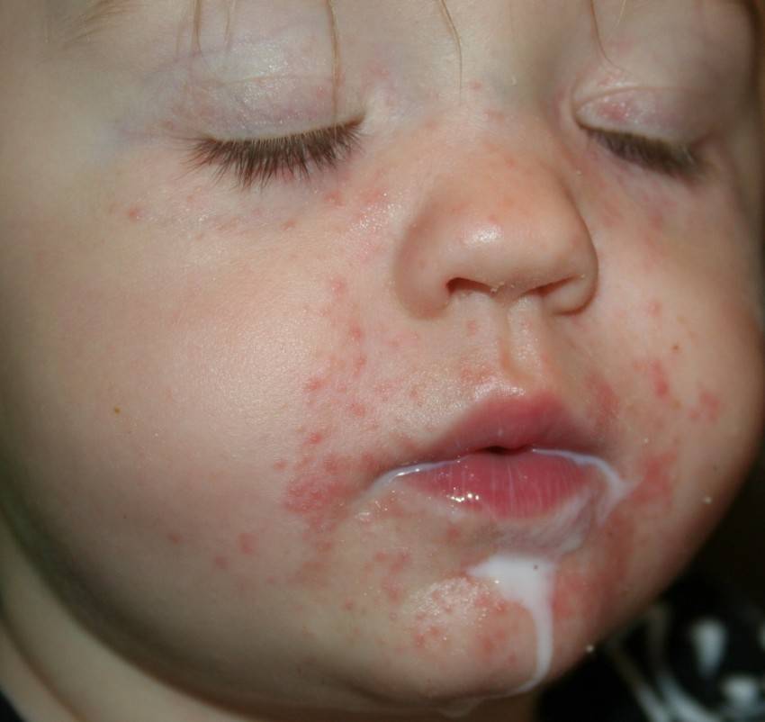 Экссудативный диатез. Проявляется на лице, шее, руках. Выглядит, как волдыри, заполненные жидкостью. При расчесывании они лопаются и покрываются корочкой. Осложнения страшны поражением нервной системы. Помимо кожных высыпаний малыш может проявлять беспокойство, плакать, плохо спать.