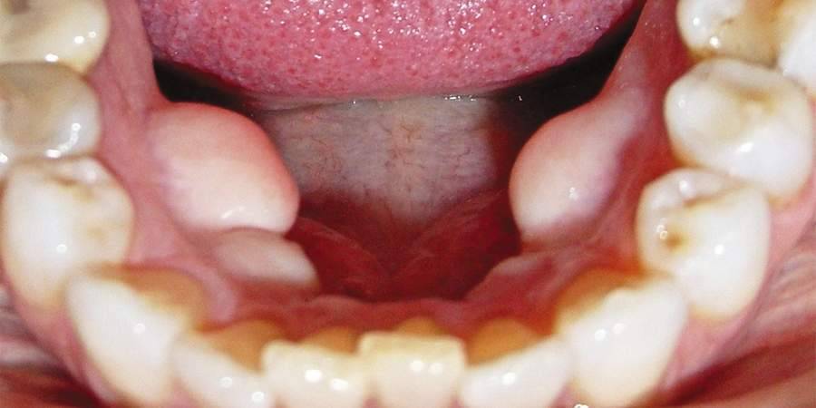 Самый редкий вид, который еще называется «периферическая амелобластома мягких тканей». Это безболезненное доброкачественное образование, появляется из зубных зачатков нижней челюсти. Оно появляется на поверхности десны в виде роговых жемчужин. После удаления наросту свойственен рецидивирующий рост (повторный).