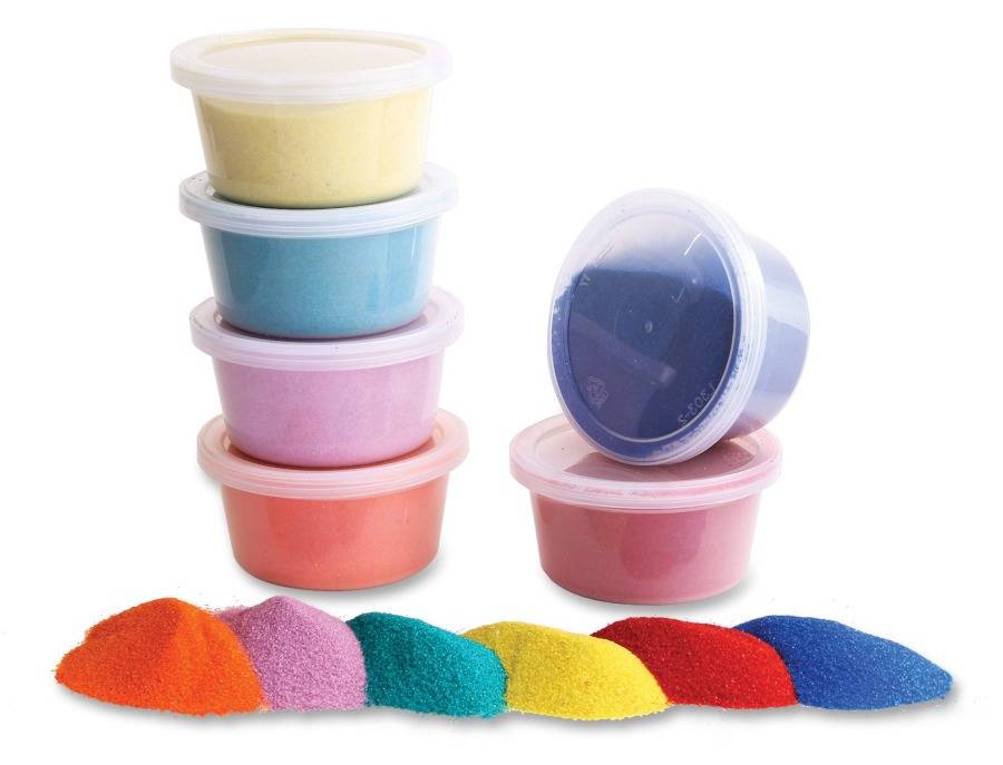 - Проделываем те же манипуляции со всеми емкостями. Песок для творчества готов.