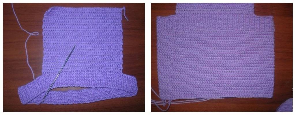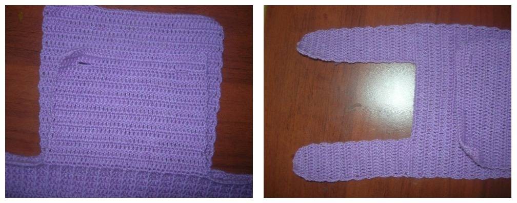 - Еще один немаловажный момент заключается в том, что при разделении вязания на четыре части, необходимо для задней связать несколько неполных рядов.