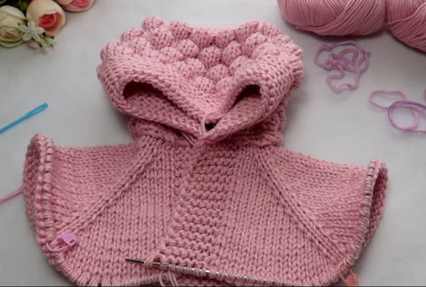 Дальше вяжем узор «Пузырики» 13 см. Планка должна быть 26 см.