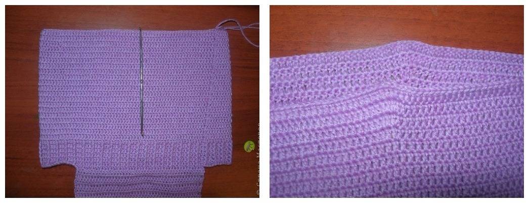 - Еще один немаловажный момент заключается в том, что при разделении вязания на четыре части, необходимо для задней связать несколько неполных рядов.
