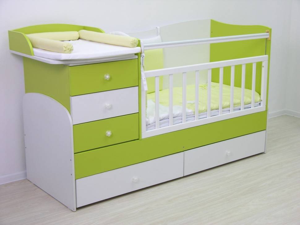 «Трансформеры» представляют гибрид традиционной детской кроватки и других предметов мебели. Одни модели сочетают спальное место с пеленальным столиком, полочками или комодом, некоторые могут видоизменяться в подростковые кровати.