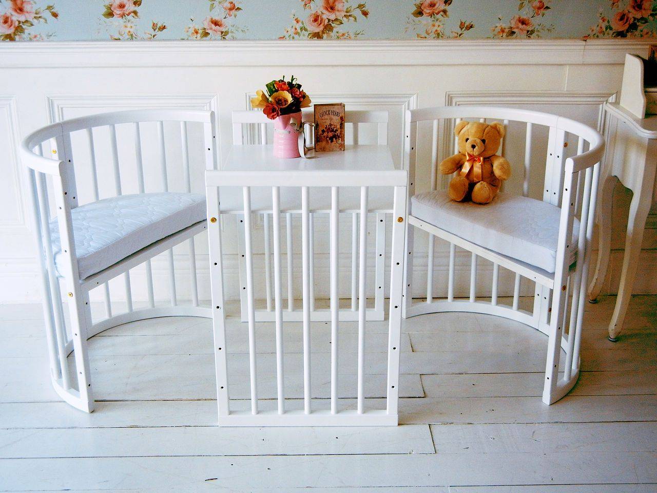 Такая модель подойдет для ребенка в возрасте от 0 до 5 лет. Их преимущество в возможности видоизменятся по мере роста ребенка. Конструкция из колыбели трансформируется в кроватку, манеж, диван, столик с креслами. Благодаря наличию колесиков детская кроватка приставная к кровати легко перемещается по комнате.