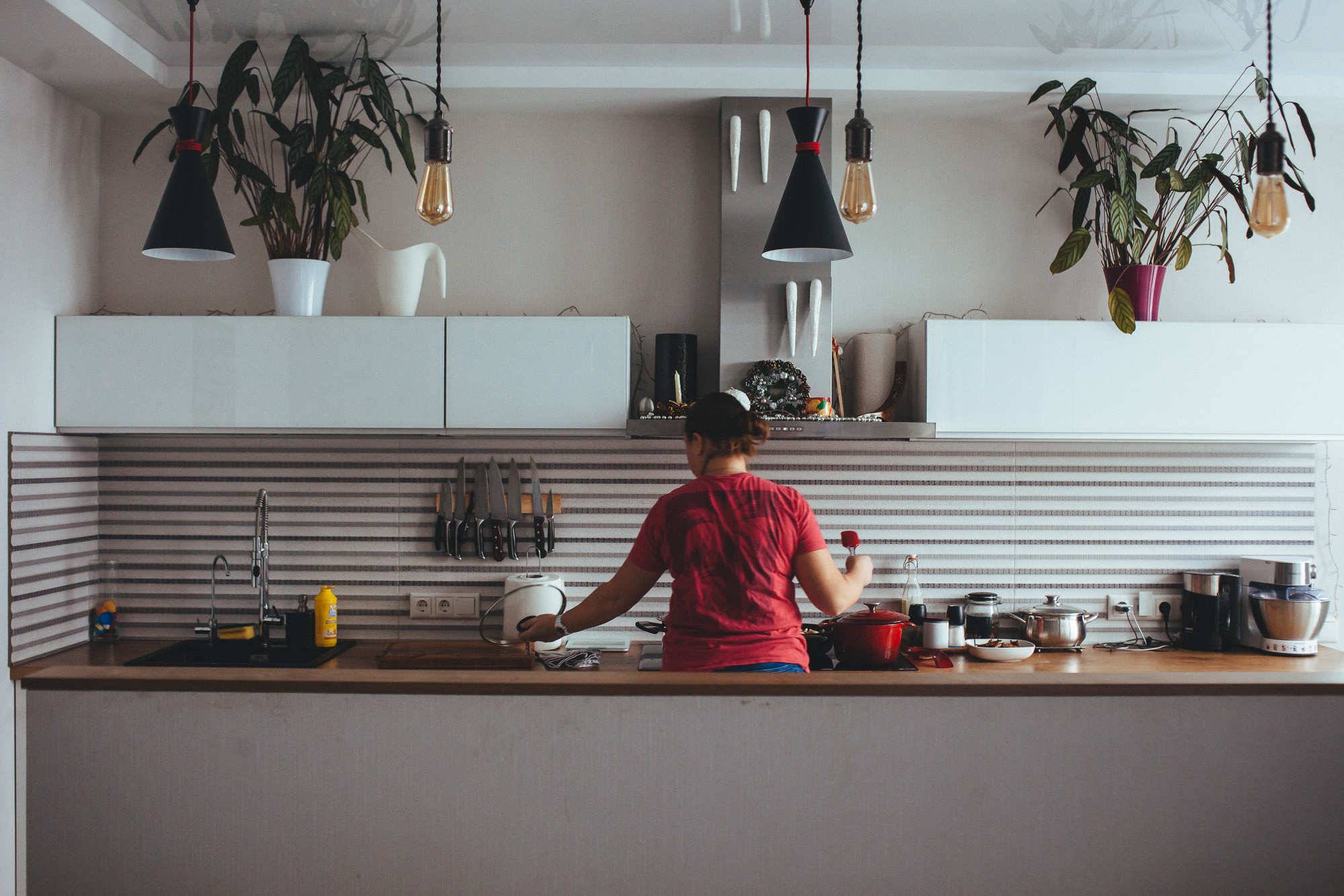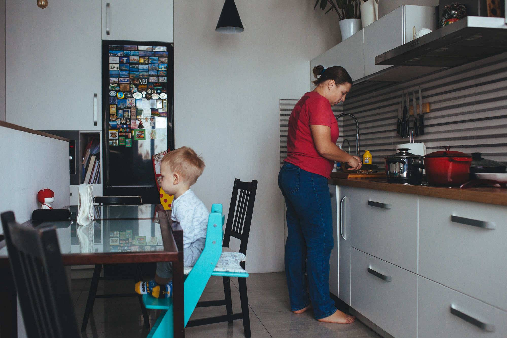 Волонтерка Анастасия готовит обед для минчанки, которая недавно стала мамой. Фото: Александр Васюкович, «Имена».