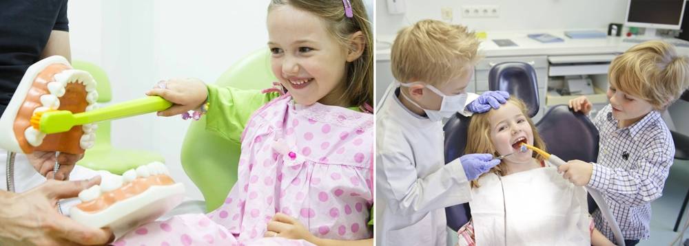 Дома можно разыграть сценку, в которой распределить роли маленького пациента, врача и родителя. Потом поменяться. Во время игры подробно объяснить ребенку, что делает стоматолог, рассказать про зеркало, в которое видны зубки со всех сторон, про водичку из маленького шланга, про пузырьки с витаминами, которые стоят на столе у врача.