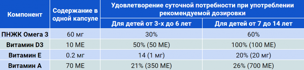 - Дозировка омега 3 для детей будет зависеть от возраста и веса пациента. Лучше не назначать дозу самому и обратиться к врачу. Грамотный специалист сможет подобрать нужную дозировку и посоветовать определенную лекарственную форму (капсулы, сироп, мармелад).