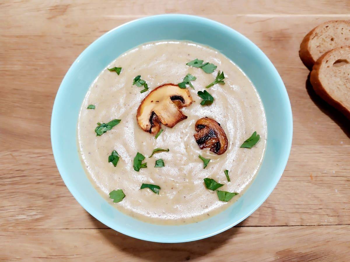 Очень вкусным получается грибной суп-пюре со сливками (их нужно добавлять за несколько минут до готовности), зеленью (петрушкой или укропом) и домашними сухариками.