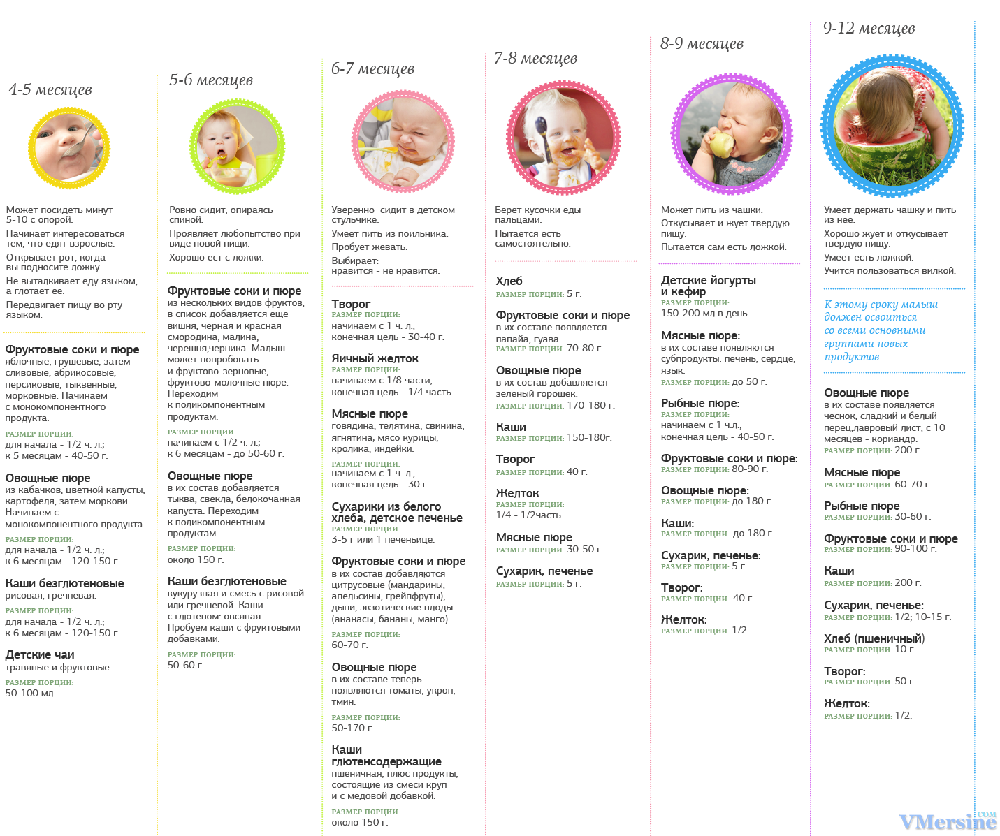 Для домашнего использования не актуальны сложные таблицы введения прикорма по месяцам с точностью до 2 недель и 10 граммов. У вас же нет задачи рассчитать стоимость продуктов для 500 грудничков на год. Вы будете ориентироваться на аппетит и вкусы своего малыша, а также семейные традиции питания.