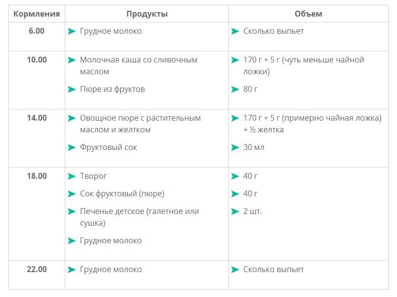 ЧИТАЕМ ТАКЖЕ: подробная таблица прикорма ребенка по месяцам при грудном вскармливании