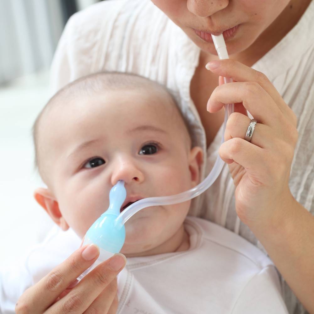 Перед тем, как высморкать сопли у младенца, нужно постараться успокоить его. Иначе он будет вырываться, и есть риск нанести ему травму. Если малыш продолжает противиться, то нужно крепче держать ему голову, чтобы не поцарапать слизистую наконечником или не ударить им. После каждого откачивания слизи любой прибор нужно тщательно мыть проточной водой.