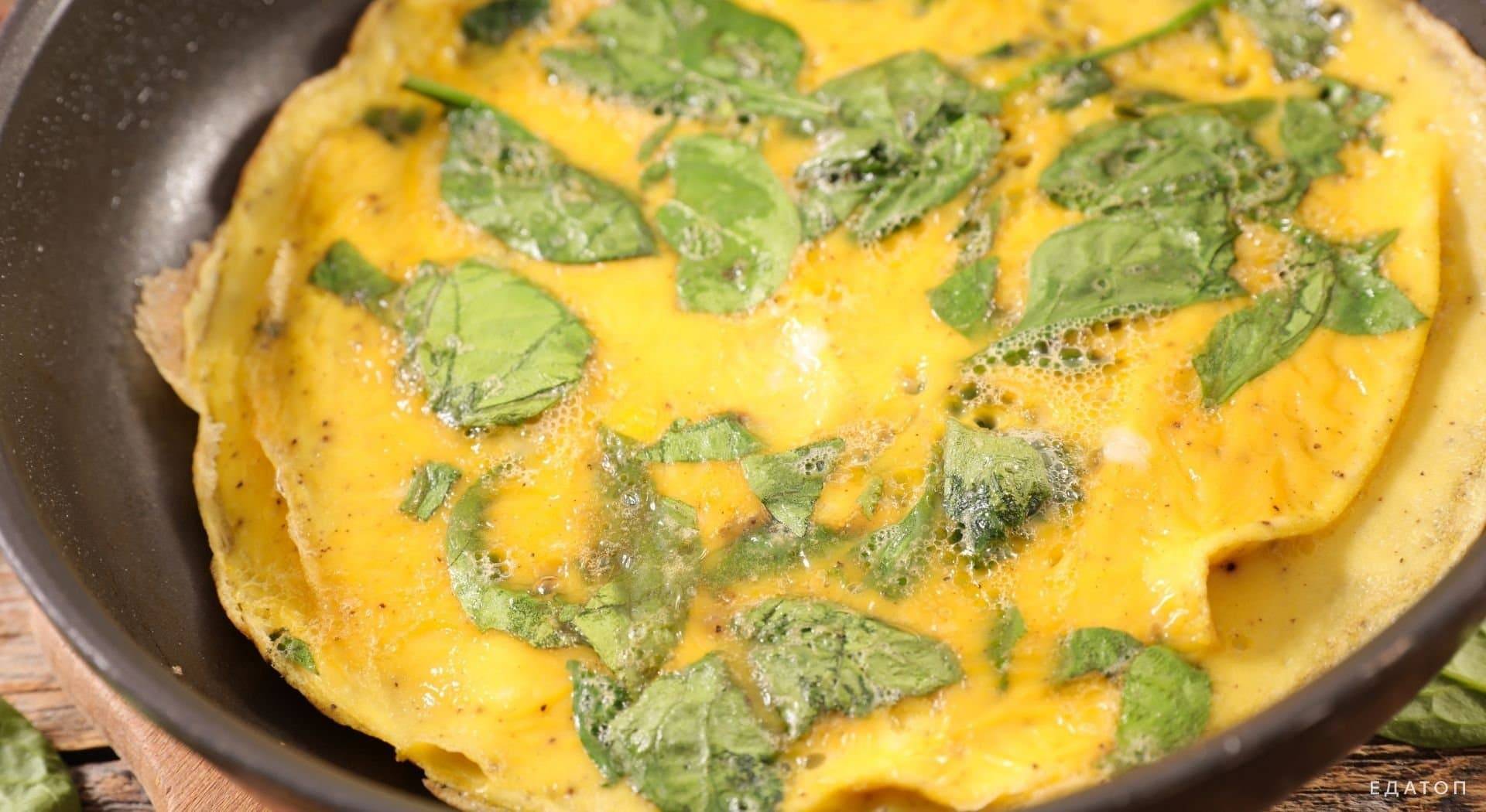 - Яйцо смешивают с молоком, солят по вкусу и взбивают до образования пены, выливают на сковороду, накрывают крышкой и готовят 10 минут на слабом огне.