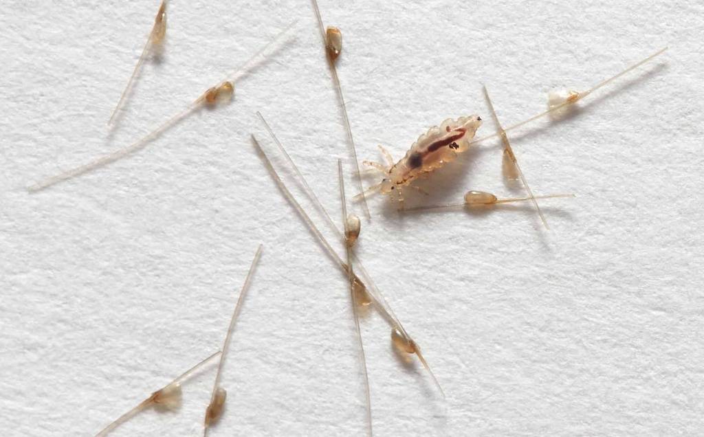 Гнида (полупрозрачное бледное яйцо размером 1 мм) – одна из стадий развития вши.