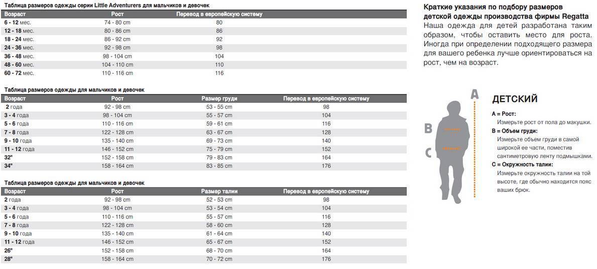 Размеры одежды для детей, принятые в России (с 0 до 14 лет)