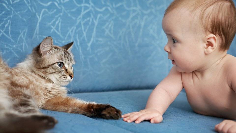 Кроме того, привлечь детское внимание можно с помощью имитации звуков домашних животных. Если ребёнок услышит знакомое «мяу» от мамы, то, естественно, удивится и начнёт прислушиваться к подобному разговору