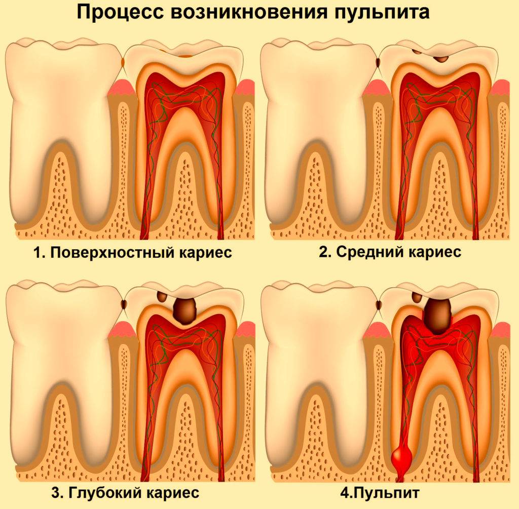 При хроническом пульпите происходит выделение крови из пульпы и разрушение твердых тканей зуба. Время от времени происходит обострение болезни и усиление боли.