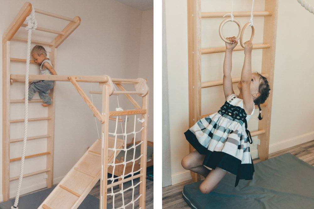 Поэтому большую часть места в помещении отдайте игровой зоне и оборудуйте ее шведской стенкой или разными спортивными снарядами