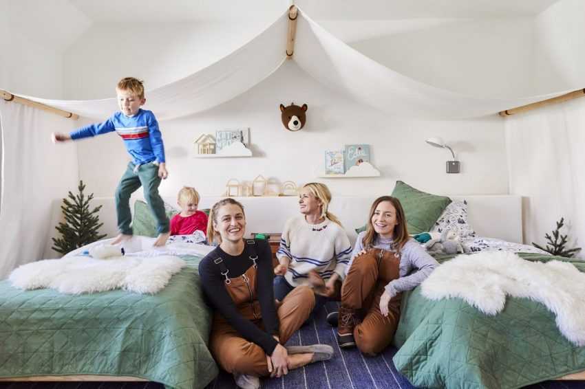 В этом случае важно отделить место для старших и средних детей, выделить отдельную зону. Им психологически необходимо иметь собственный угол, где можно спокойно отдохнуть