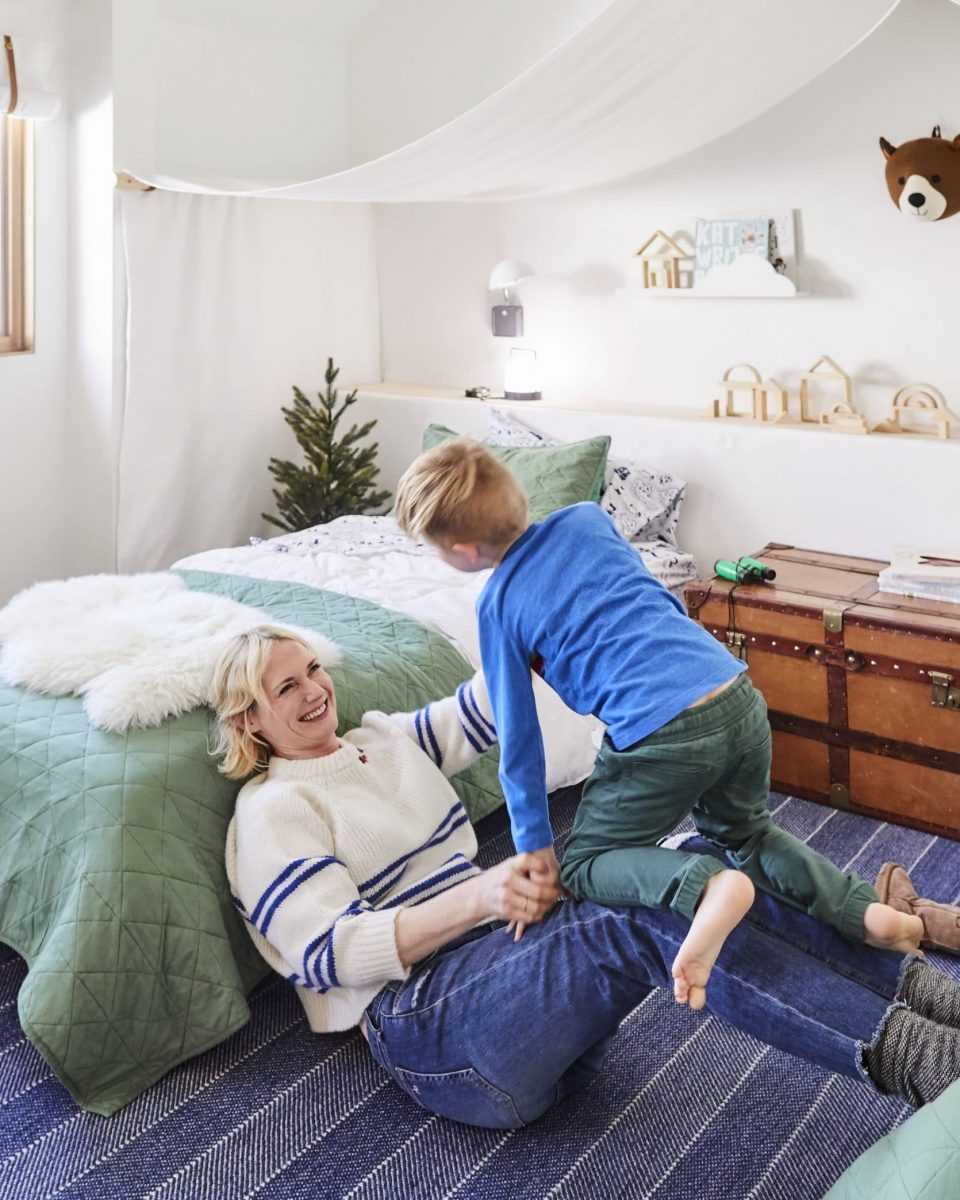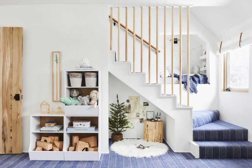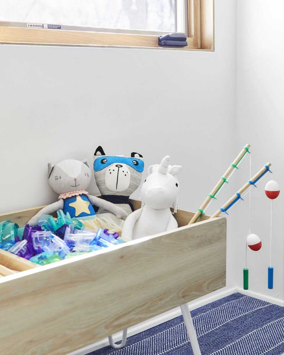Игровую зону удобно отделить напольным покрытием, рядом организовать места для хранения игрушек, чтобы удобно было убирать их, когда потребуется. Для каждой вещи в комнате нужно определить своё место, тогда эффекта захламленности можно будет избежать (хотя бы несколько мгновений после уборки).