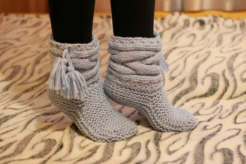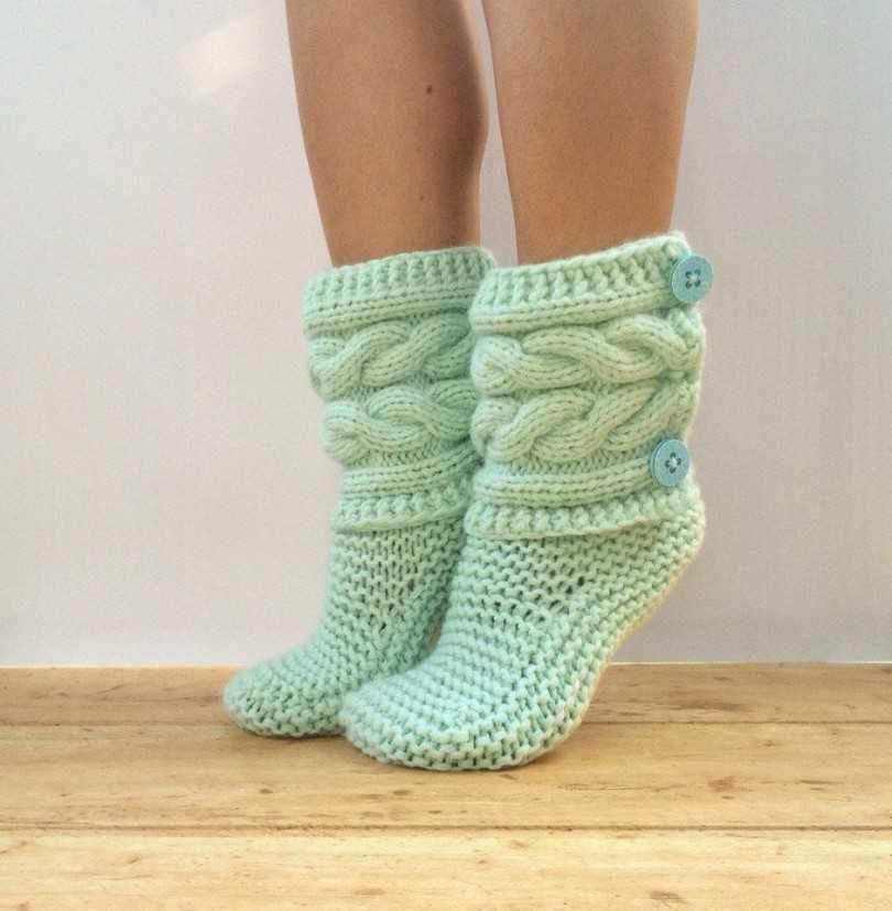 Человек, располагающий большим свободным временем может связать уютные носки сапожки для дома. Они представляют собой носки без шва и с декоративной застежкой на пуговицах. Чтобы они держали форму, используйте нитки с составом шерсть пополам с акрилом, в идеале 60 на 40.