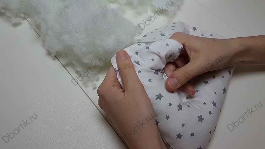 Разминаем подушку, для равномерного заполнения наполнителя (холлофайбера).