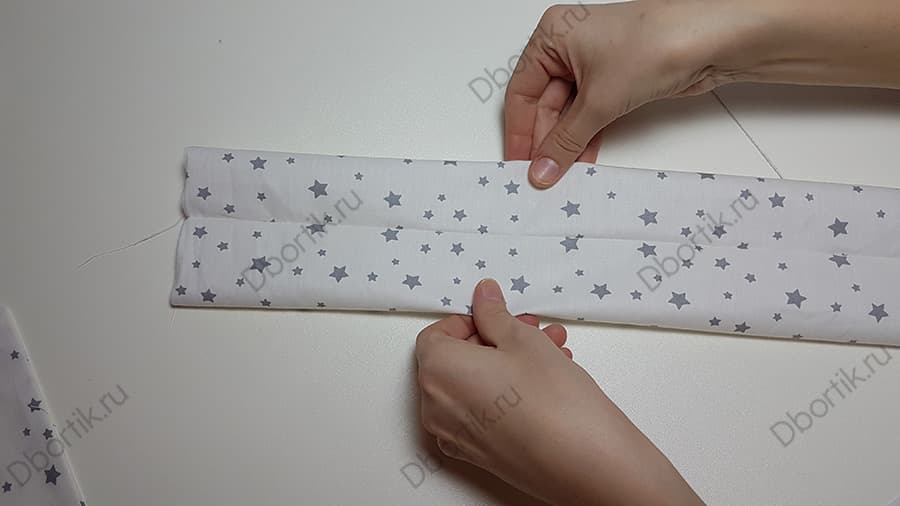 Теперь необходимо зашить открытый участок заготовки, сделать это можно с помощью косой бейки.