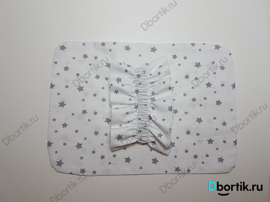 Прикладываем ленту к середине подушки, чтобы резинка была вдоль подушки.