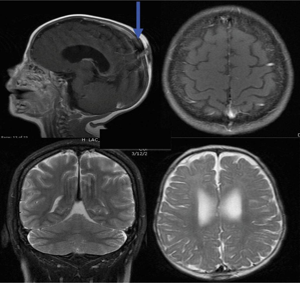 При врожденной форме кисты в раннем возрасте фиксируются эписиндромы и внутричерепная гипертензия. Образование в мозге может послужить причиной формирования у ребенка олигофрении и отклонений в психическом развитии.