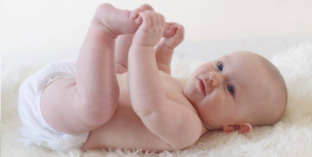 - если младенца положить на живот, то он вытянет ручки вперед, образовав прямой угол в локтевом суставе;