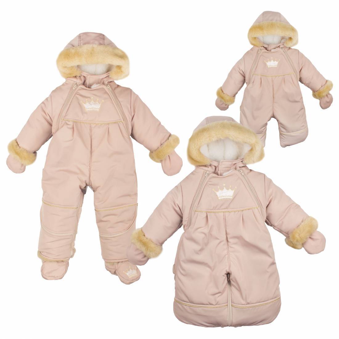 Он имеет капюшон с мехом, варежки и пинетки. Порадует и многообразие дизайнерских решений и расцветок.